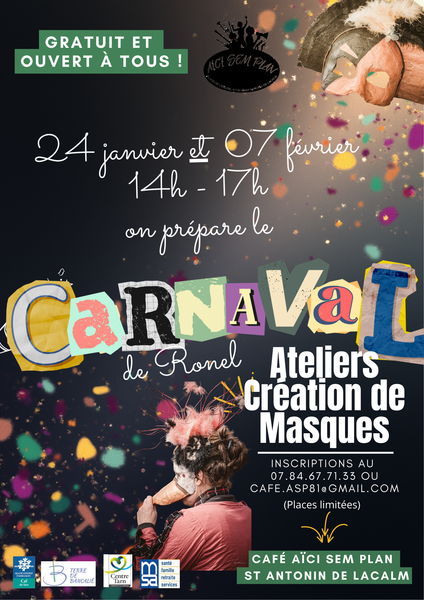 Atelier masques pour le Carnaval des enfants du 21 mars à Ronel