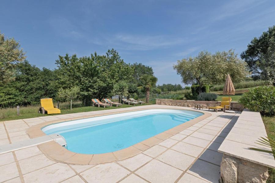 Une piscine partagée de 8 × 4 m (profondeur 1,50 m) s'ouvre aux beaux jours pour savourer pleinement l'art de vivre du Sud-Ouest.