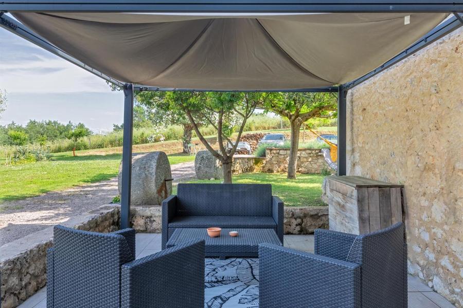Les extérieurs prolongent naturellement votre séjour. La grande terrasse et le barbecue permettent de profiter des repas en plein air, tandis que le vaste jardin offre de belles zones d'ombre près des oliviers.