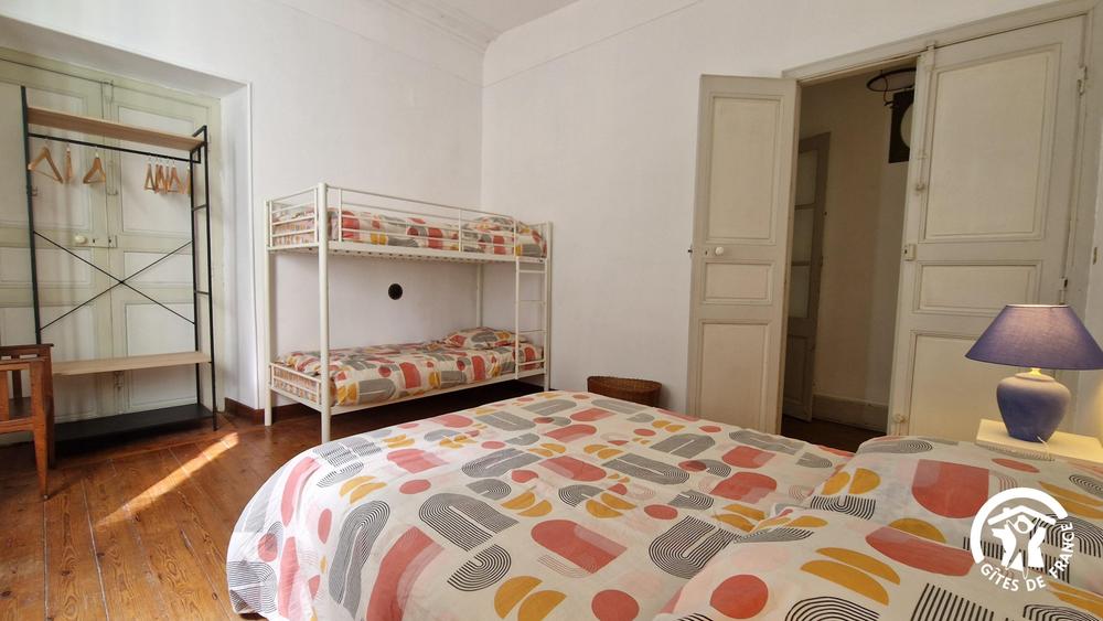- une chambre pour les enfants avec un lit double en 140x190cm et un lit superposé avec deux couchages en 90x190cm