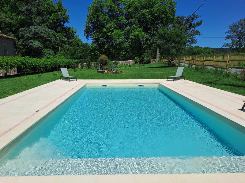 Piscine : 10x5m sur 1,50 m de profondeur, sécurisée par une alarme anti-chute.