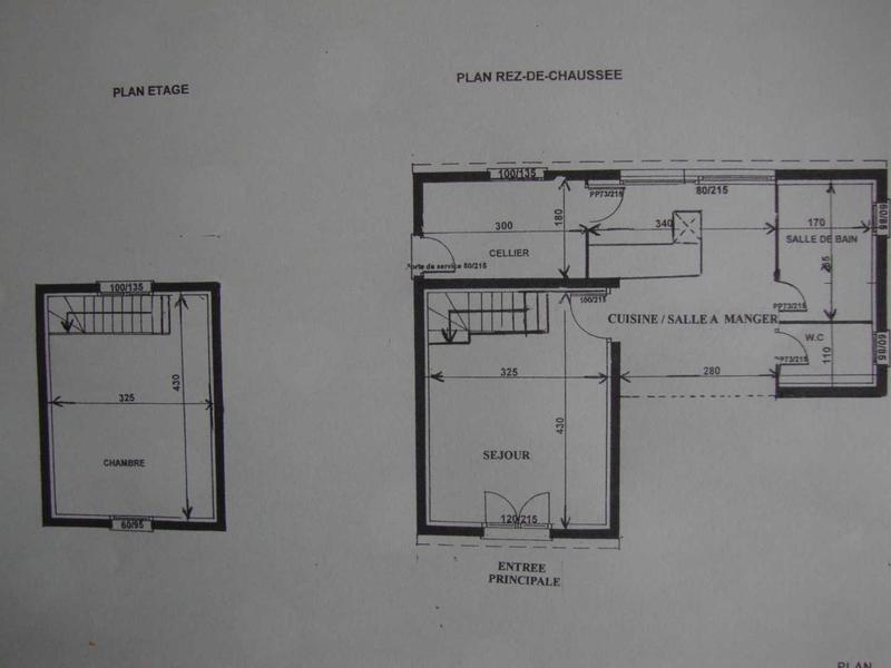 Rez-de-chaussée : séjour/cuisine avec cellier, salon, salle d'eau, wc. Chambre à l'étage.