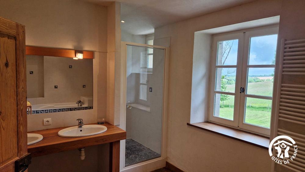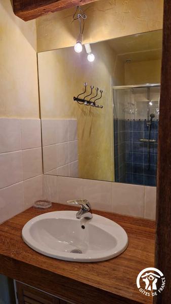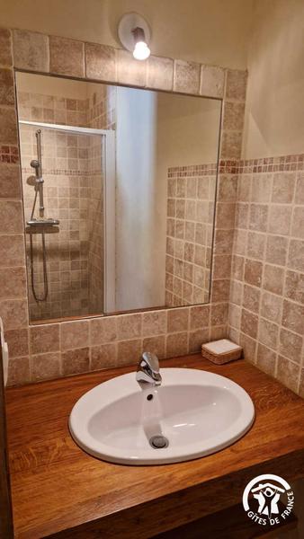 - troisième chambre avec 4 lits simples en 90cm, dont deux superposés et salle d'eau privative (douche et vasque)