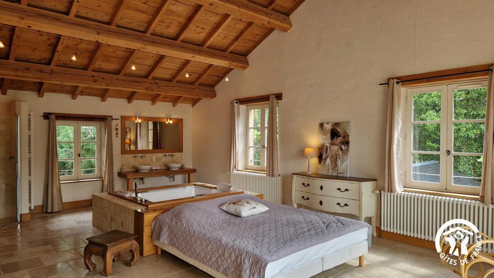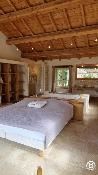 - la dernière chambre, une immense suite parentale avec lit en 180cm, baignoire balnéo deux places, grande douche, double vasque, dressing et balcon privatif.
