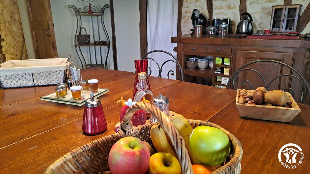 Chambre Entre Parenthèse pour trois personnes, et chambre Vers le Bonheur pour deux personnes. Table d'hôtes sur réservation. C'est avec son tablier et ses casseroles que Stéphanie règne dans la cuisine... De bons petits plats préparés avec amour, des recettes et un plaisir à cuisiner : un héritage laissé par sa grand-mère... Ici, la convivialité passe aussi par les casseroles... Le domaine du service est réservé à Jean-Louis qui, avec sa bienveillance naturelle, son sourire et son accent chantant mettra tout en oeuvre pour vous satisfaire.