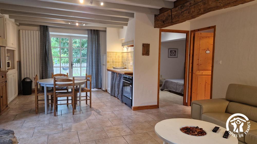 Joli gîte champêtre pour deux, à l'étage, avec accès par un escalier extérieur, mitoyen au gîte Le Vieux Temple (réf. G554 sur Gîtes de France). Une fois que vous à l'étage par l'extérieur, tout le gîte est de plain-pied. Une terrasse privatise, sans vis-à-vis et clos se trouve de l'autre côté du gîte avec table et barbecue au charbon de bois.