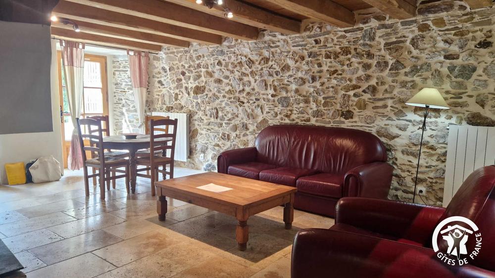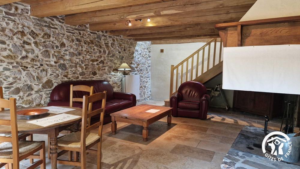 Le gîte est à l'extrémité d'une longère, mitoyen à un autre gîte et bénéficie d'une terrasse privative ombragée sur le devant. Vous pourrez ensuite profiter du vaste terrain tout autour du hameau, qui s'étend de la ferme jusqu'à la forêt !