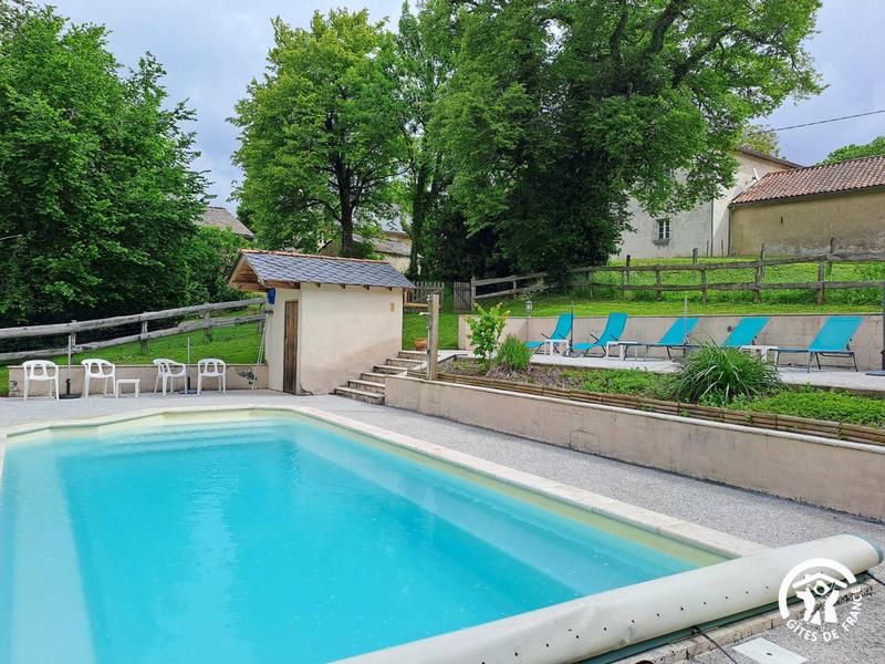 Piscine ouverte de juin à septembre, à partager avec les locataires des autres gîtes sur place : références G1438 pour 12 personnes, G268 pour 9 personnes et G553 pour 2 personnes.