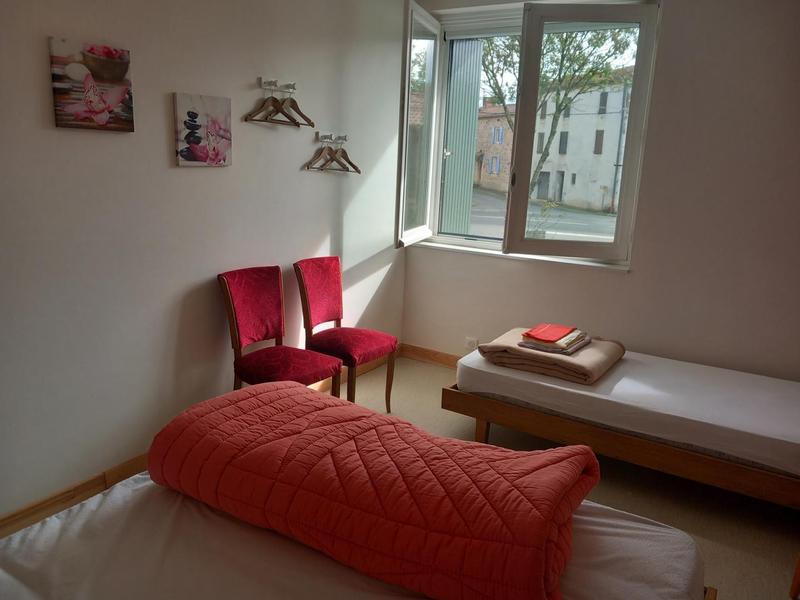 - chambre rose avec lit double 140x190cm et un lit simple 90X190cm